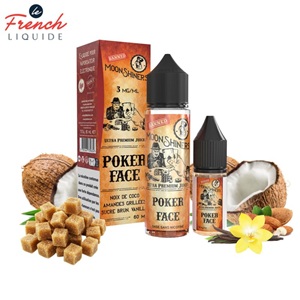 L'e-liquide Poker Face 10ml en Sel de nicotine Moon Shiners est la quintessence de la délicatesse. Une noix de coco exotique, des amandes grillées, du sucre brun et une délicate touche de vanille ne pourront vous laisser de marbre !