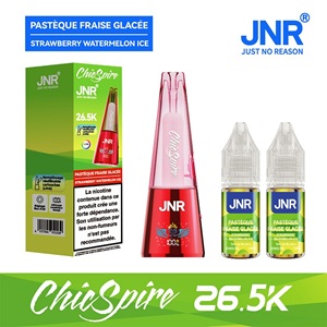 Le Chicspire 26.5K de JNR offre jusqu’à 26 500 bouffées. Il inclut deux e-liquides, une lumière RGB, un flux d’air ajustable et un affichage intelligent du niveau et de la batterie. Sa batterie 900 mAh se recharge en Type-C. Équipé d’une résistance mesh 0.62 Ω et disponible en 6 saveurs, il est certifié TPD, sûr et conforme.