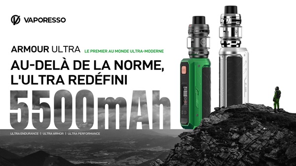 L’ARMOUR Ultra de Vaporesso révolutionne la vape avec la première batterie intégrée 5500mAh de l’industrie, offrant jusqu’à 100 W de puissance et 3 jours d’autonomie dans un format 25% plus compact que l’ARMOUR S. Certifié IP68, IP69K et MIL-STD-810H, il résiste à l’eau, la poussière, la chaleur, les chocs et les chutes.